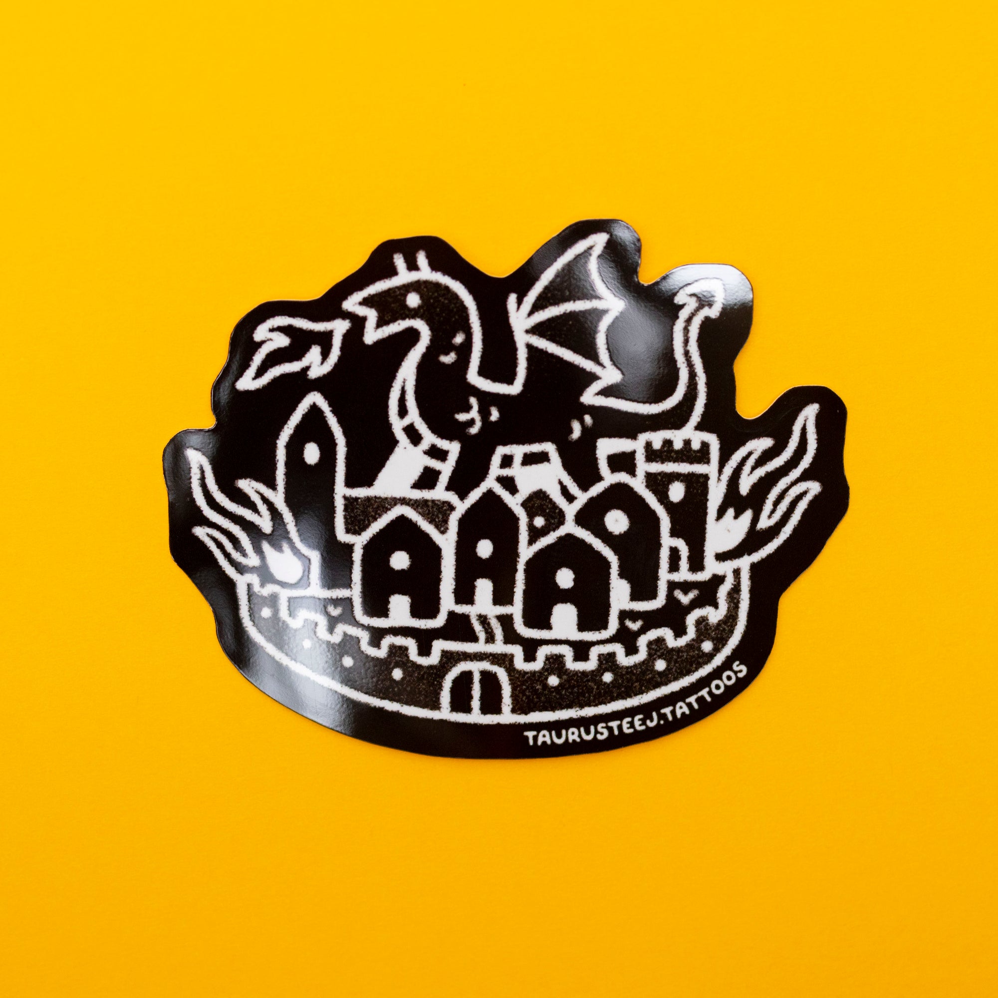 An original sticker featuring the tattoo flash art of Taurus Teej!