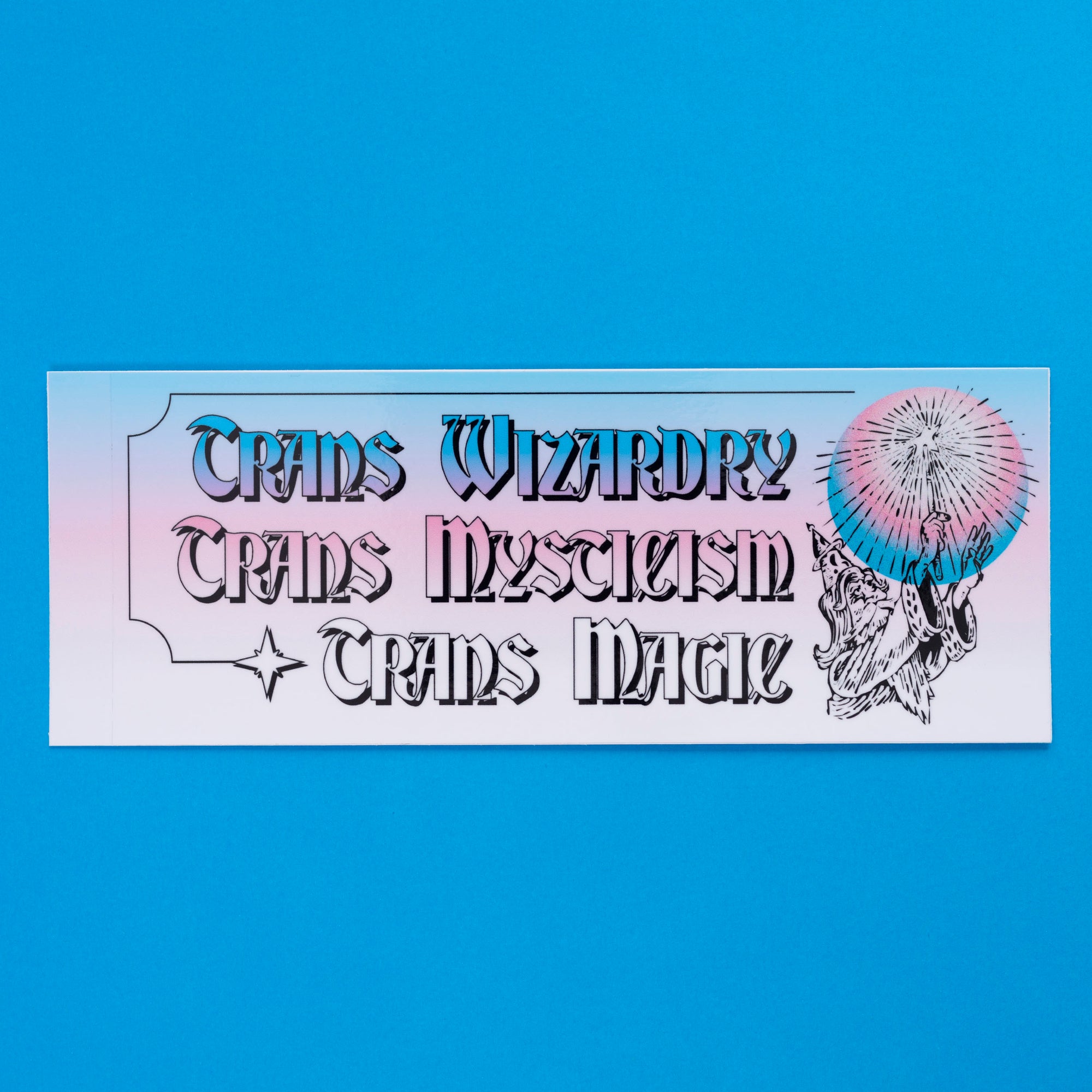 TRANS WIZARDRY! TRANS MYSTICISM! TRANS MAGIC! let everyone know how cool and mystical you are with this vintage inspired bumper sticker!