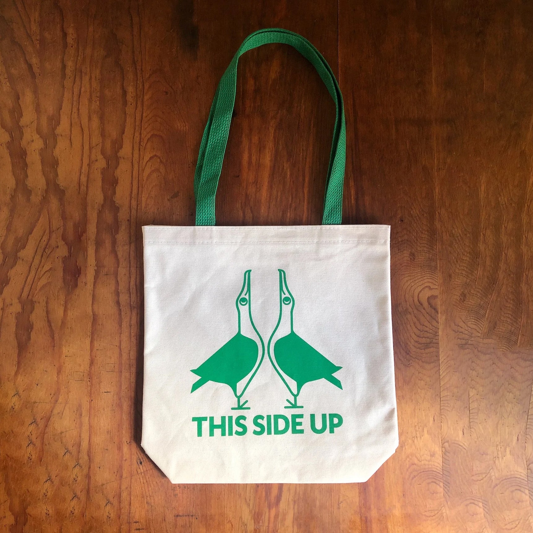 Inspired by the very cute courtship dance of the Laysan Albatross! This screen printed tote bag is made with natural cotton making it reusable, environmentally friendly, and durable. Perfect for carrying groceries, books, or other items and a great way to show off your love for these beautiful birds!