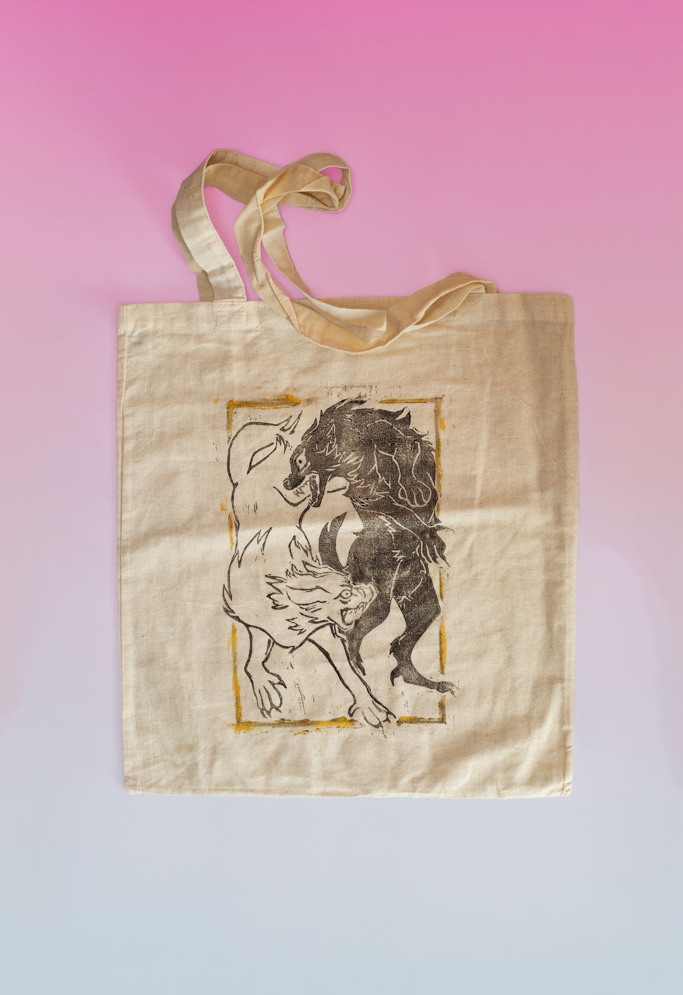 Every day is one where you fight tooth and claw... Each tote bag is unique, and hand printed on 100% cotton using lino and fabric grade ink.
