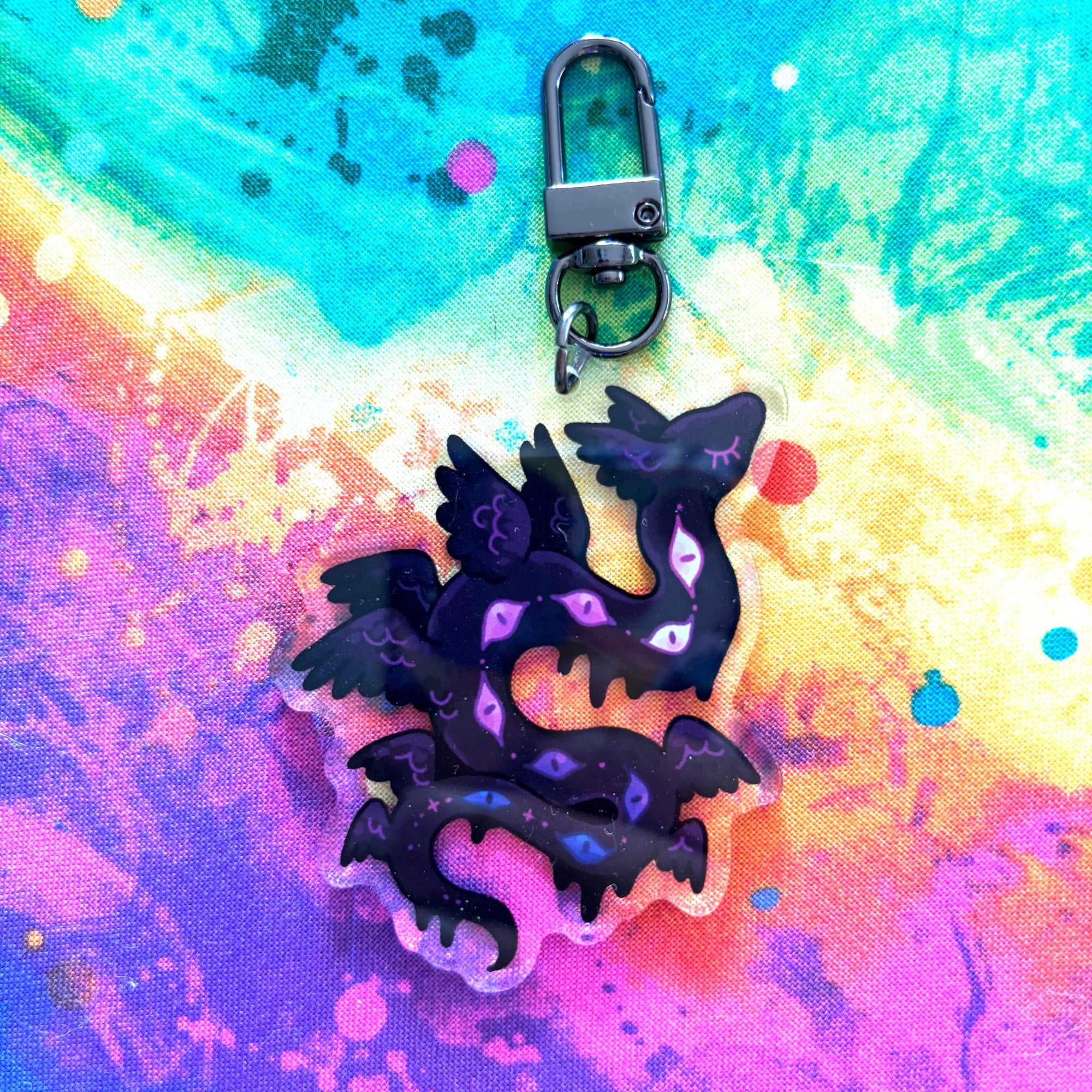 | This acrylic keychain is 2.5 inches (6.3 cm) on the longest side, double-sided with the same print on both sides; it has a gun metal lobster clasp. |