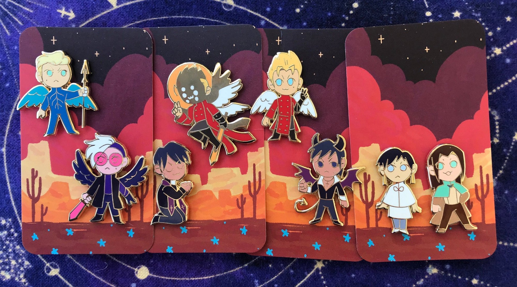 Each pin is about 1.5 inches (3.8 cm) long with hard enamel and gold plating. They have two pin posts and rubber backings. These are mini pins, they are a little smaller than my usual pins