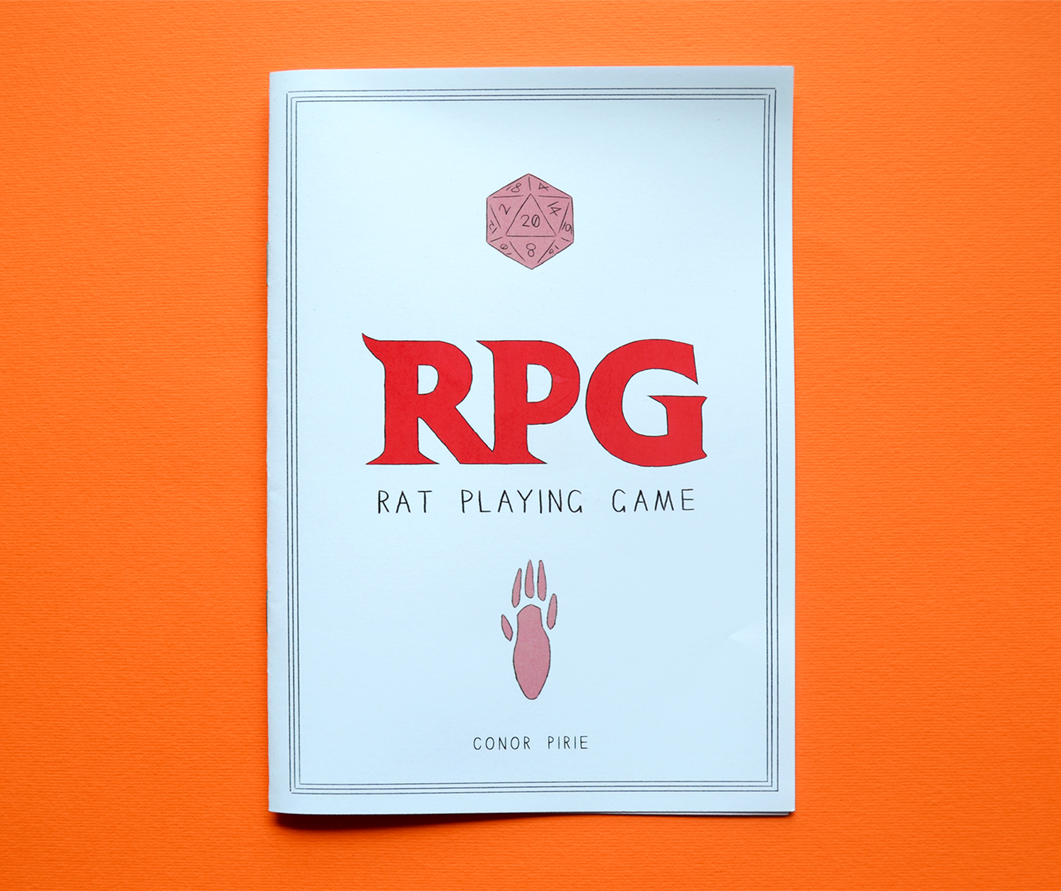 A full-colour A5 12-page art zine with drawings of rats dressed up as Dungeons and Dragons classes! Illustrated by Conor Pirie.
