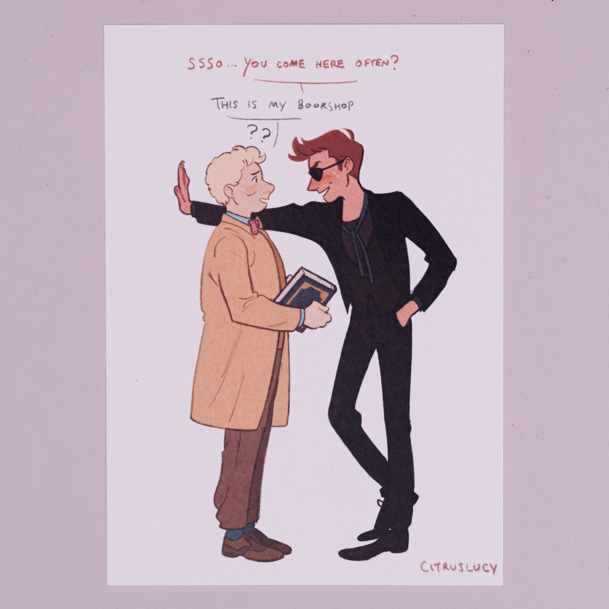 A6 postcard fan art print inspired by Aziraphale and Crowley from Good Omens.