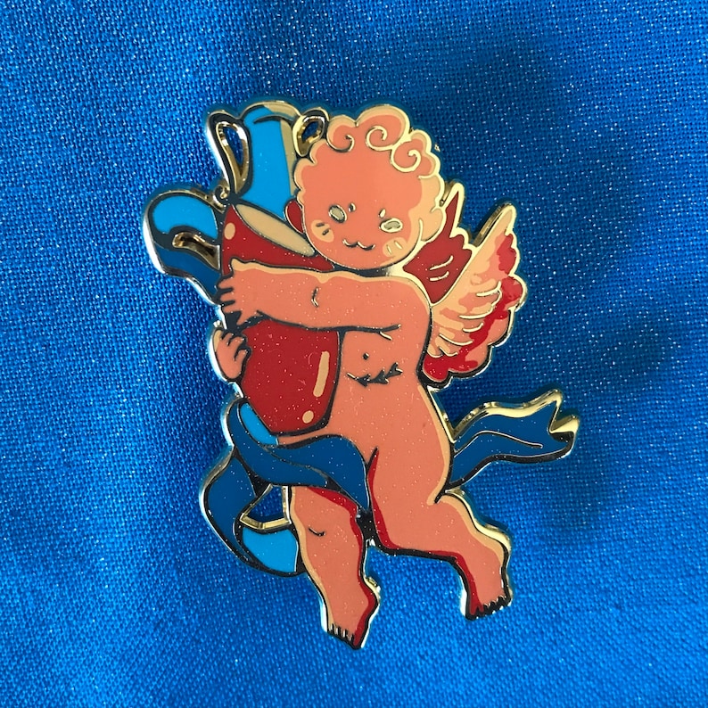 A little putto (cherub) for the constellation Aquarius.Each pin is about 2 inches (5 cm) long with hard enamel, gold plating, and screenprint. They have two pin posts and rubber backings.This whole batch was flawed so they are discounted. For my complete pin grading policy, please see my About & FAQ: linktr.ee/ultra.infinite