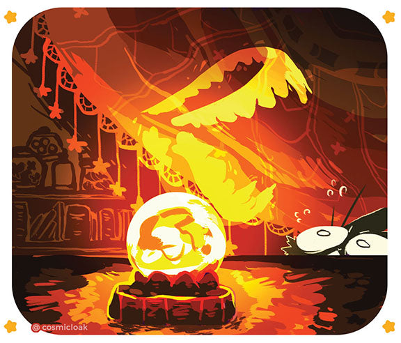 Prints feature a curious cat accidentally activating a witch's crystal ball to reveal spooky glowing jaws. Part 2 of 2 of the Premonition Set. Printed on Satin 260gms paper.