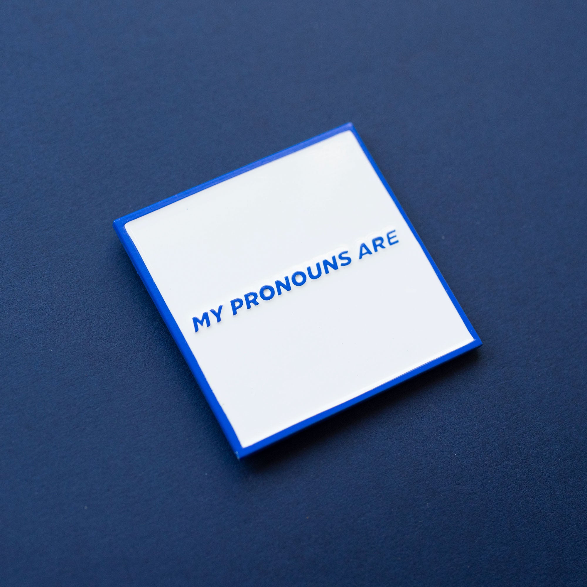 ‘My Pronouns Are' Reusable Enamel Pin Blue