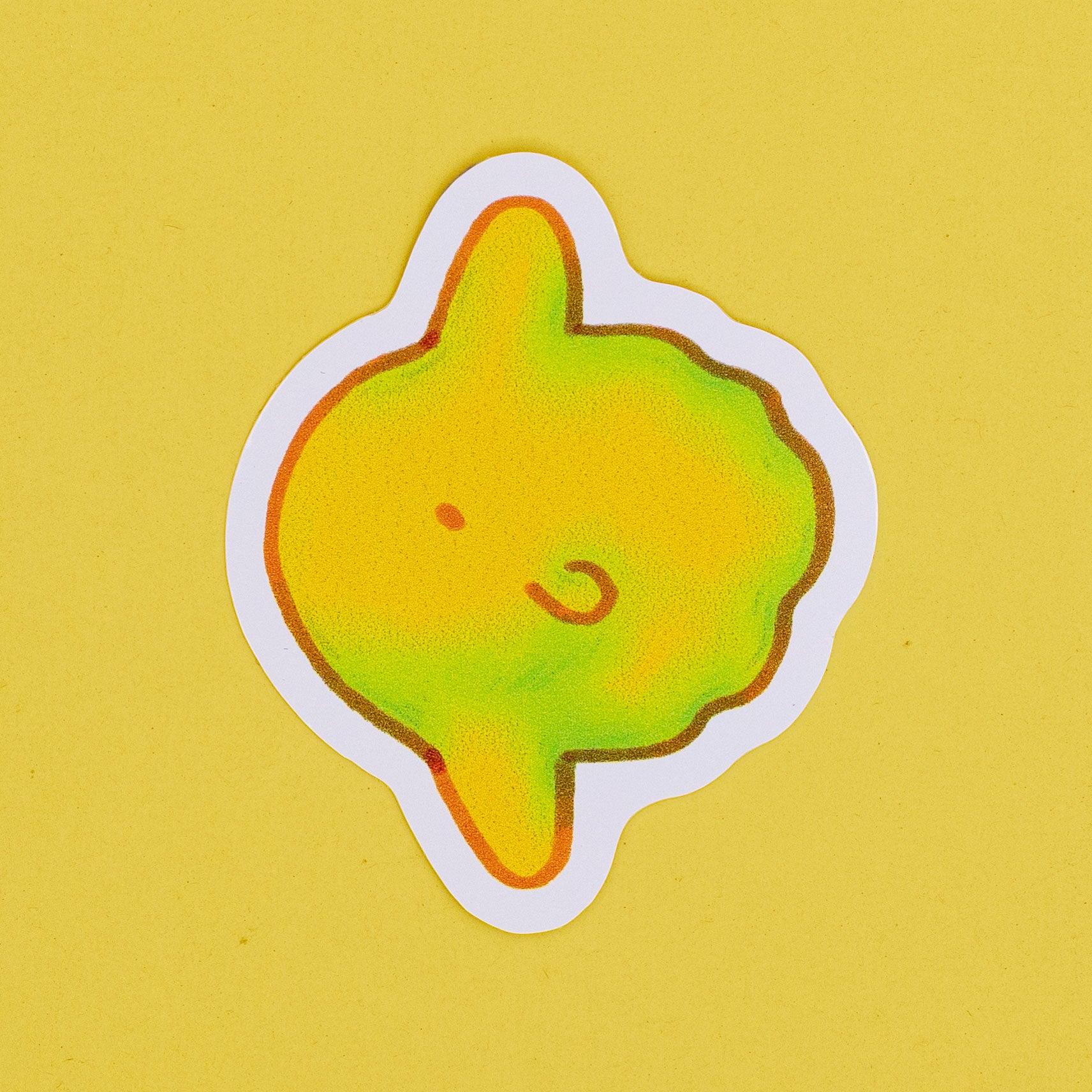 Did you know that more than 80% of the ocean is still unmapped? Can you imagine what might be down there? Maybe colossal sea monsters! Maybe lost civilisations! Or, more importantly, maybe even more weird ocean guys! This little guy is one we already know about, but that doesn't make them any less special. Did you know that the largest sunfish are around 2000 kg, and they sunbake when they get too cold? High quality sticker printed on waterproof, dishwasherproof, and fridge/freezer proof vinyl.