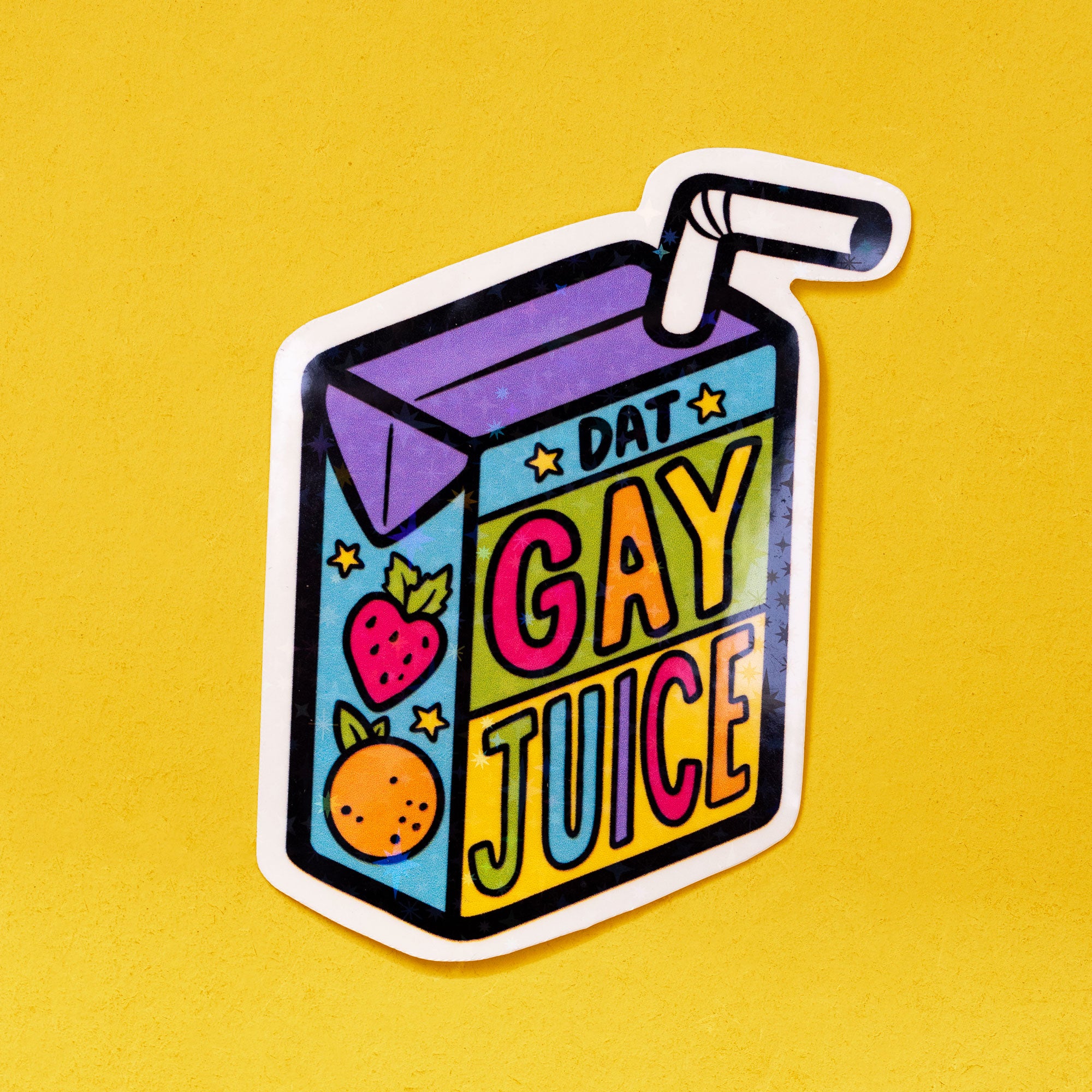 Ah, that's refreshing. Gimme some of dat delicious fruity Gay Juice! This cute holo sparkle sticker features cute fruits, sweet stars, and of course, is designed to celebrate your queer identity in classic Trash Creature style.