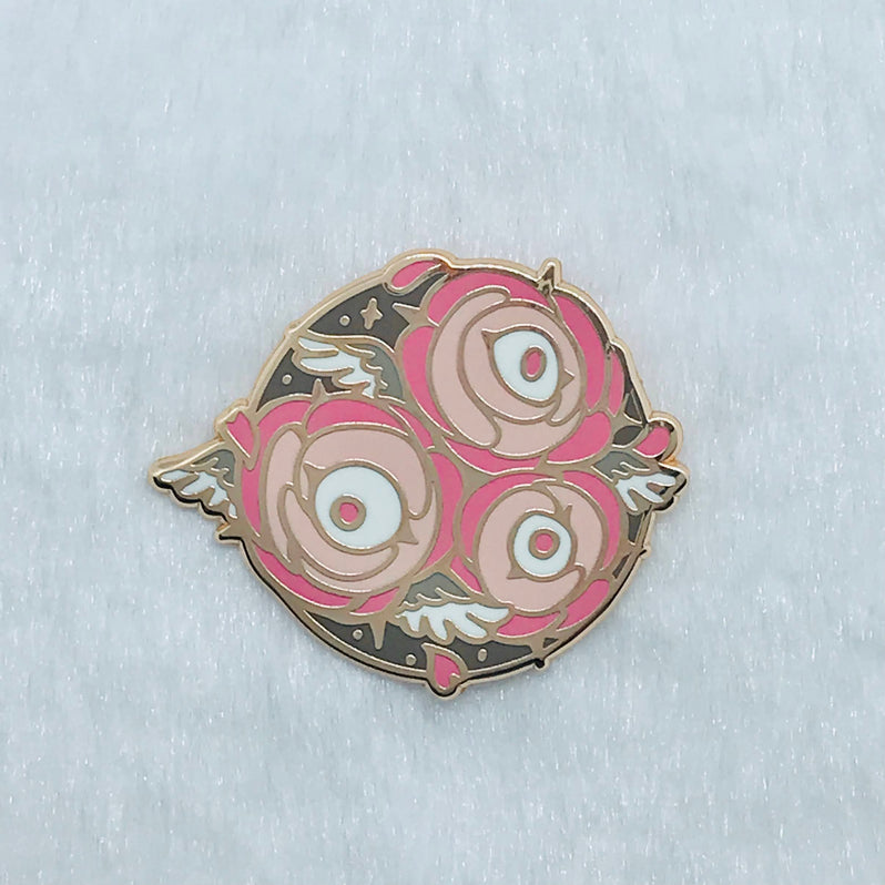 Gothic rose angels in pink and gray, for Demigirl pride.This pin is approximately 1.4 in (3.6 cm) long. The pin has hard enamel, rose gold plating, and two pin posts with rubber clutches.This listing is for standard grade pins only. Standard grade pins may have one or two tiny imperfections.