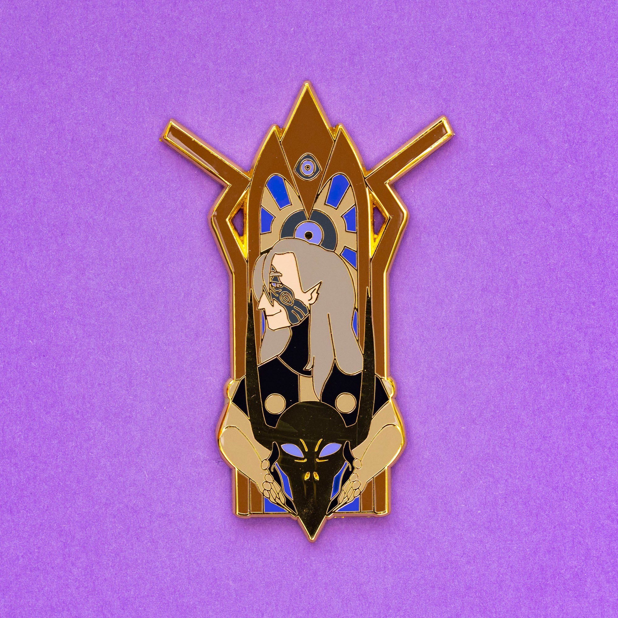 A pin made in collaboration with @wyrmzier. The pin is hard enamel, with gold plating, two pin posts, and rubber clutches. Belos is designed by @wyrmzier, and is approximately 2.7 in (7 cm) long.