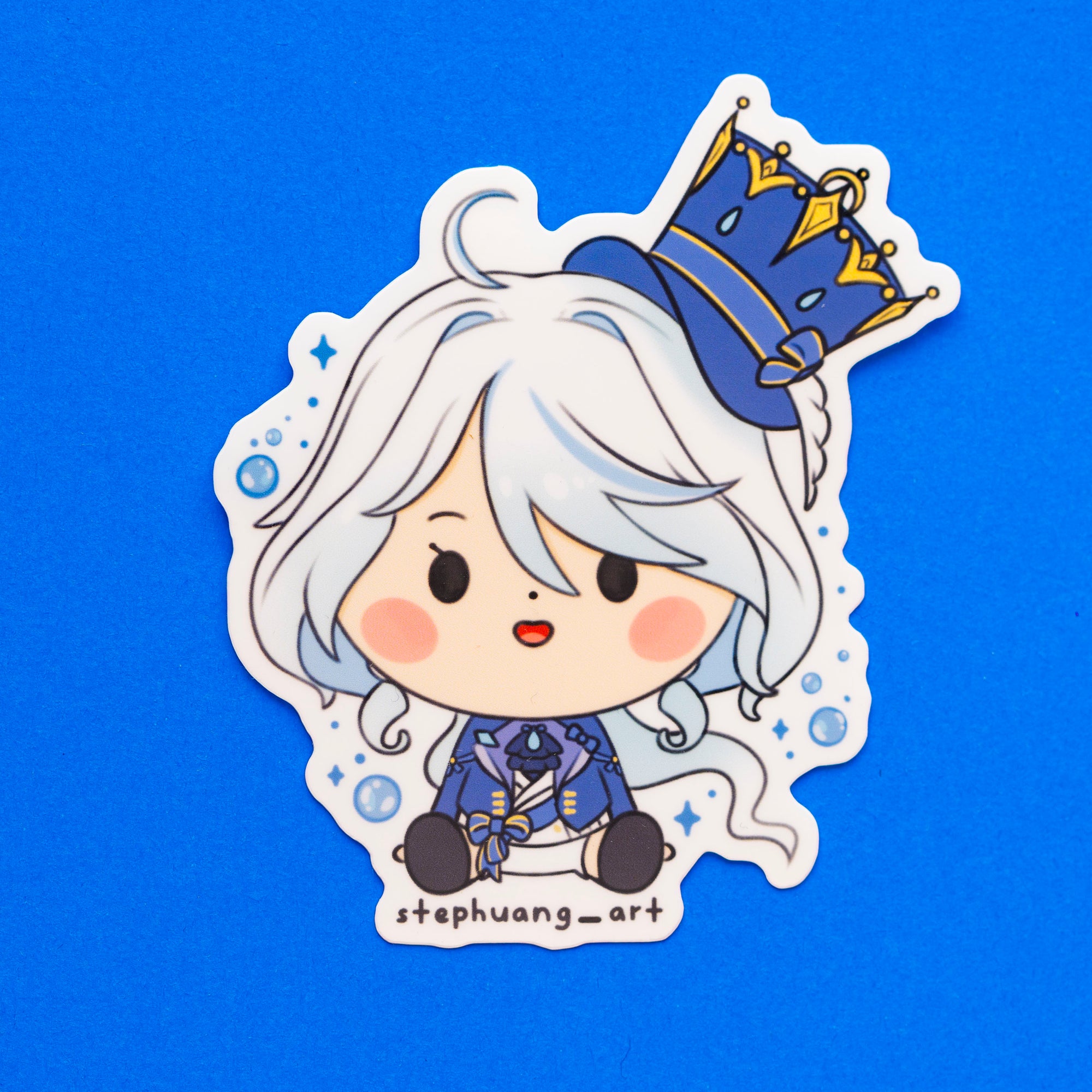 Furina/Focalors from Genshin Impact drawn in a cute chibi style by Stephanie Huang
