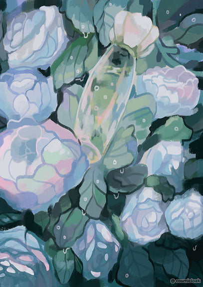 Print features a dreamy bush of gardenia floral blooms, with a dewy glass perfume bottle nestled amongst the lush greenery♡ Printed on Satin 260gms paper.