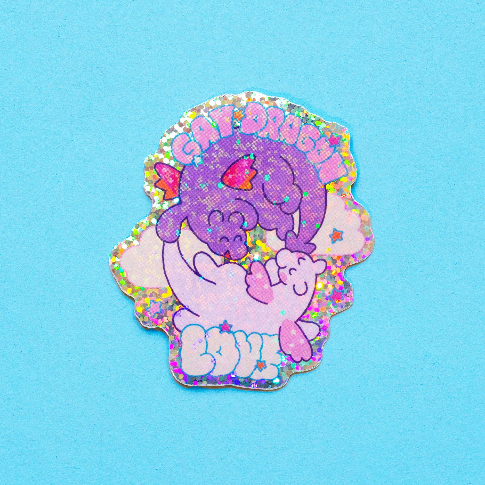 These dragons are gay and in love! Spread the word of dragons who are gay and in love with an adorable sticker to adorn your journal or waterbottle
