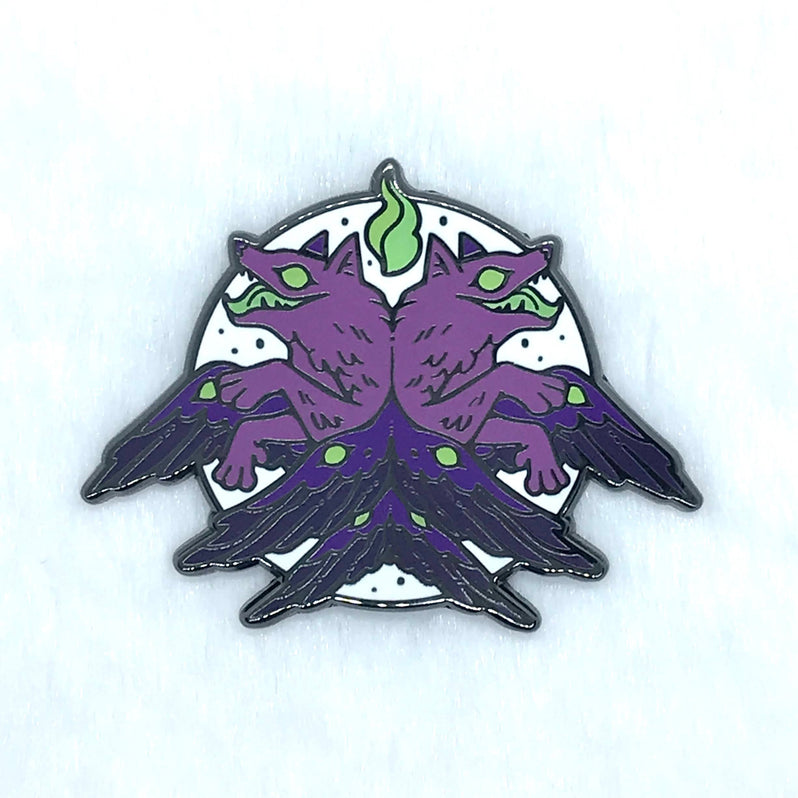 Cerberus Cherubim loves going on walks and enacting holy vengeance. The pin is 2 inches (6 cm) wide. It has two pinbacks with rubber clutches and hard enamel. This pin is part of my angel-themed pin series, Angelology. Glitter Cerberus is available in white glitter with gold plating. This listing is for standard grade pins only. Standard grade pins may have one or two tiny imperfections.