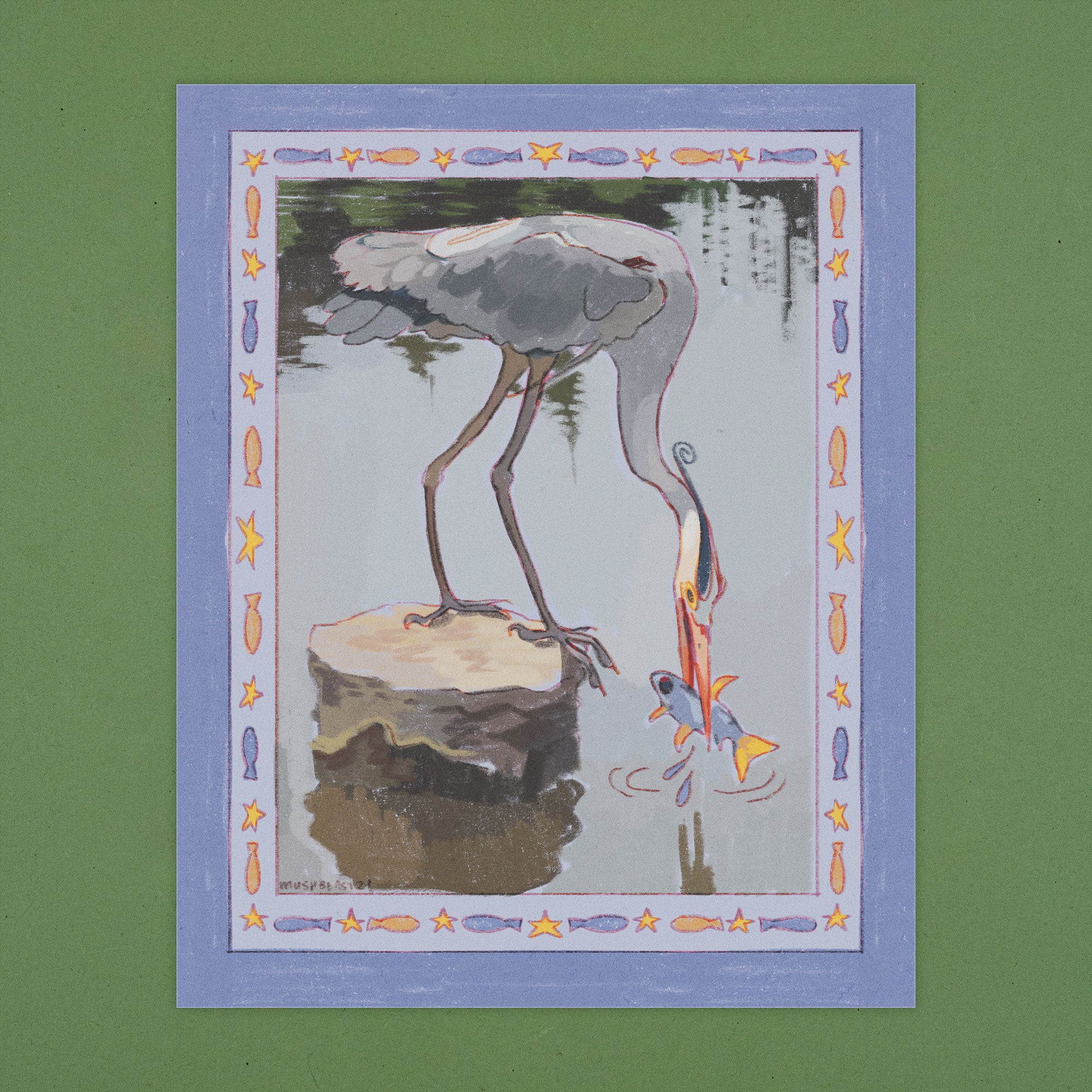 One of Mushbeast's most popular print! This grey heron was the start of their obsession. 8 x 10" print on 280gsm paper.