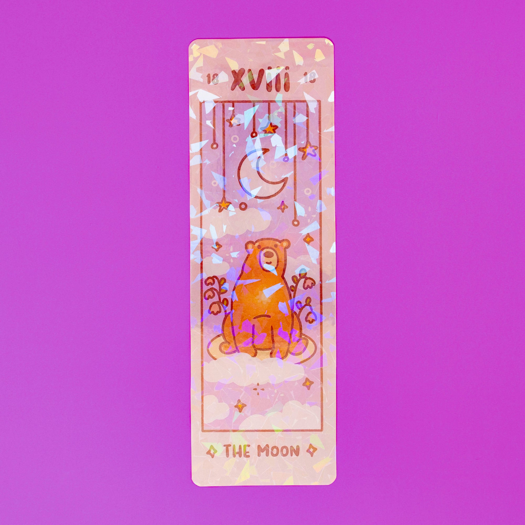 Tarot, but make it bears!These holographic bookmarks are perfect for astrology and book lovers alike! Choose from three cute tarot designs: The Star, The Moon, and The Sun.