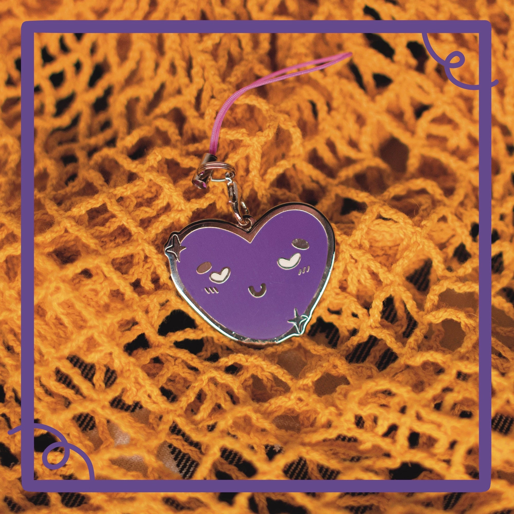 Silver Plated Metal, Hard Enamel Fill with WHITE or PURPLE Nylon Phone Strap