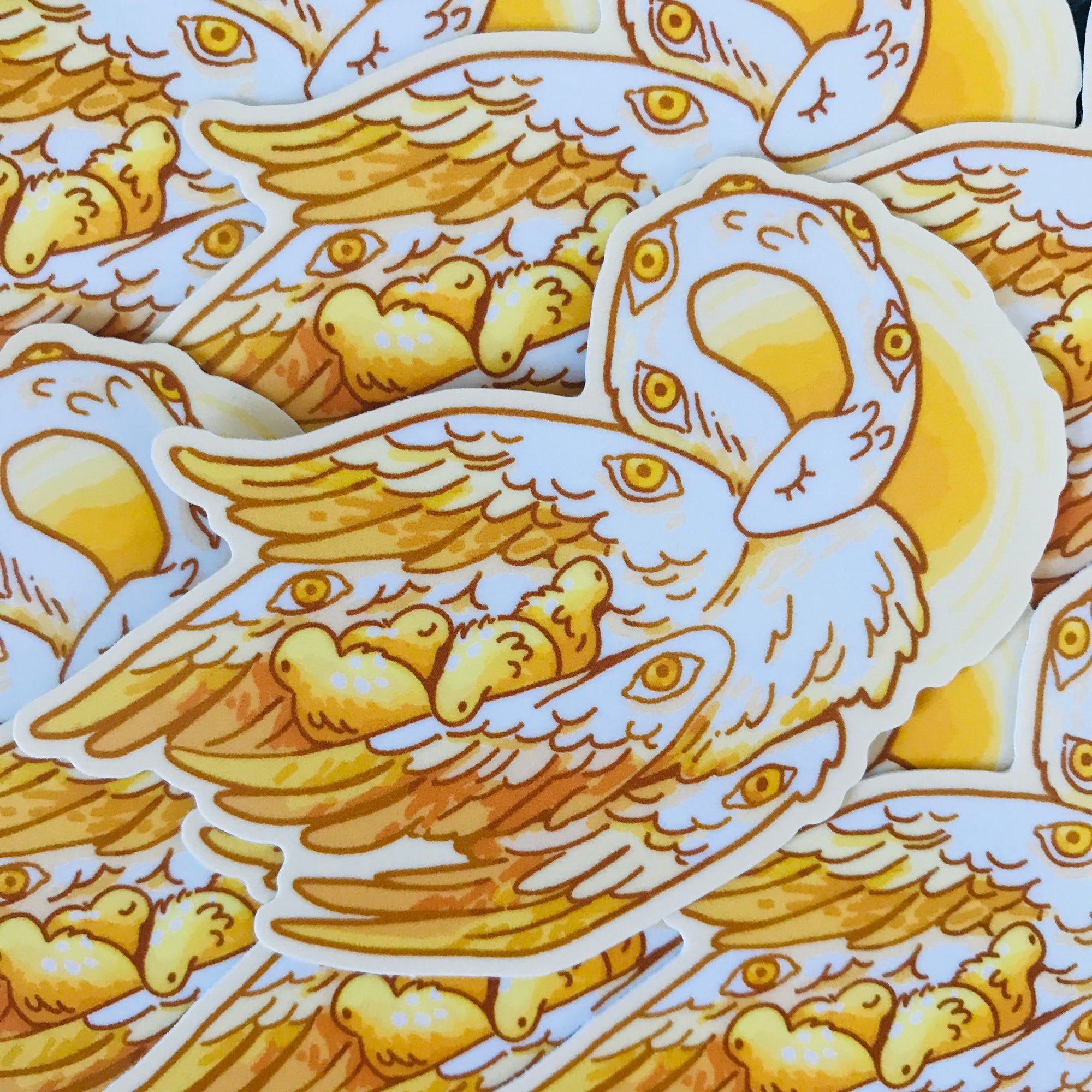 The Mother Swan protects her fledgling angels. This sticker is approximately 3 inches (7.6 cm) on the longest side. It is printed on matte vinyl.