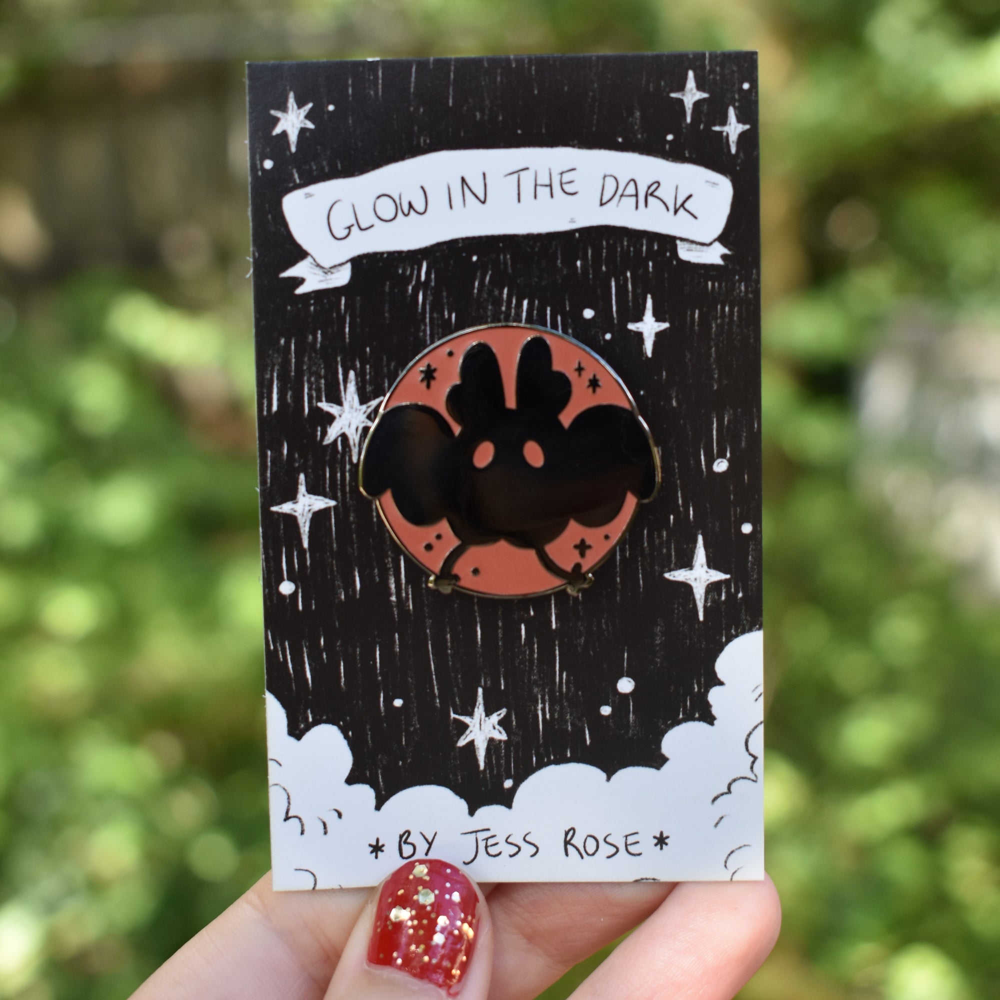 Charge using sunlight or your phone torch and watch the mothman glow red in the dark!