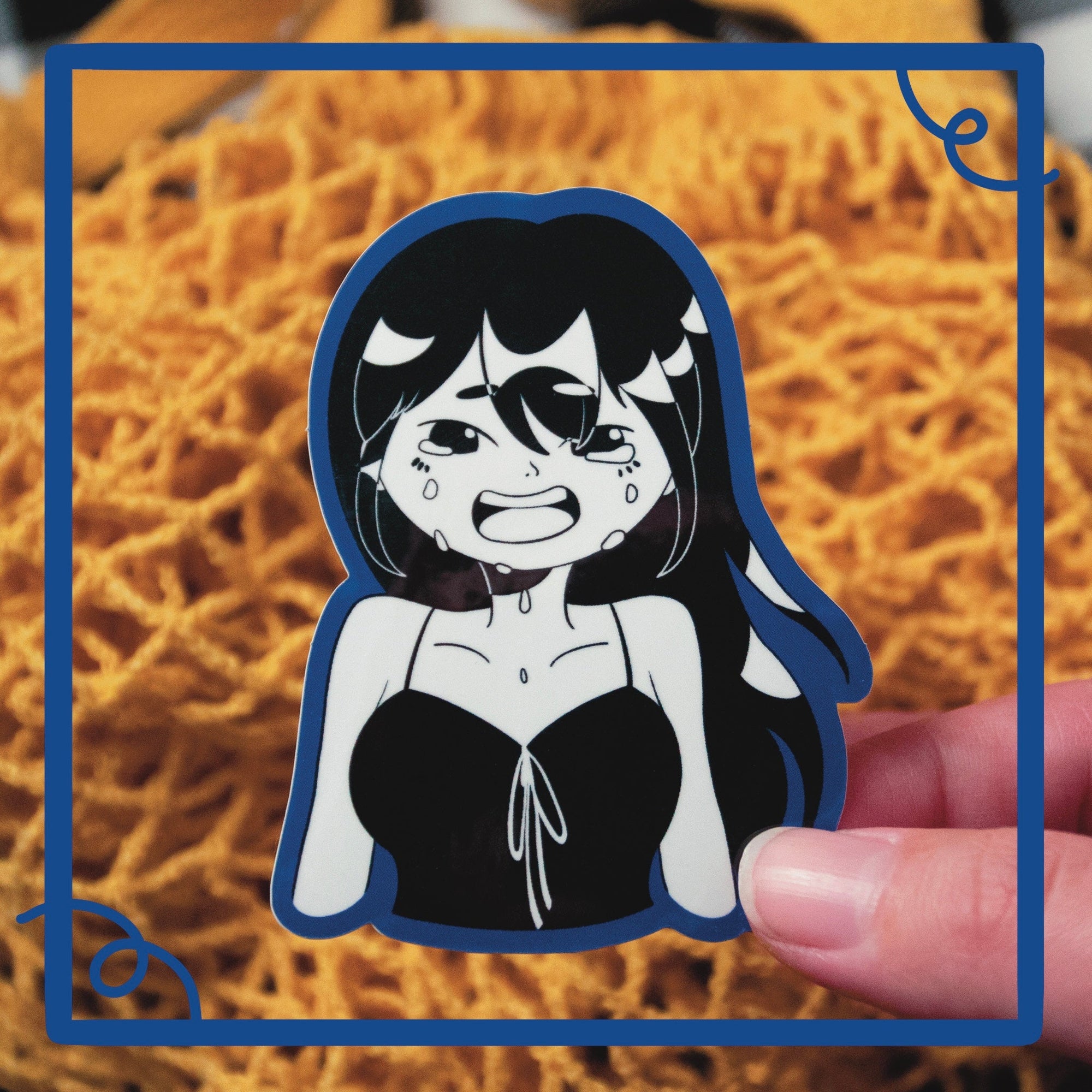 "Nande" meaning "why?!" in Japanese. This design was created when the artist was stood down from her job during the Covid pandemic so it was a purely emotional piece.