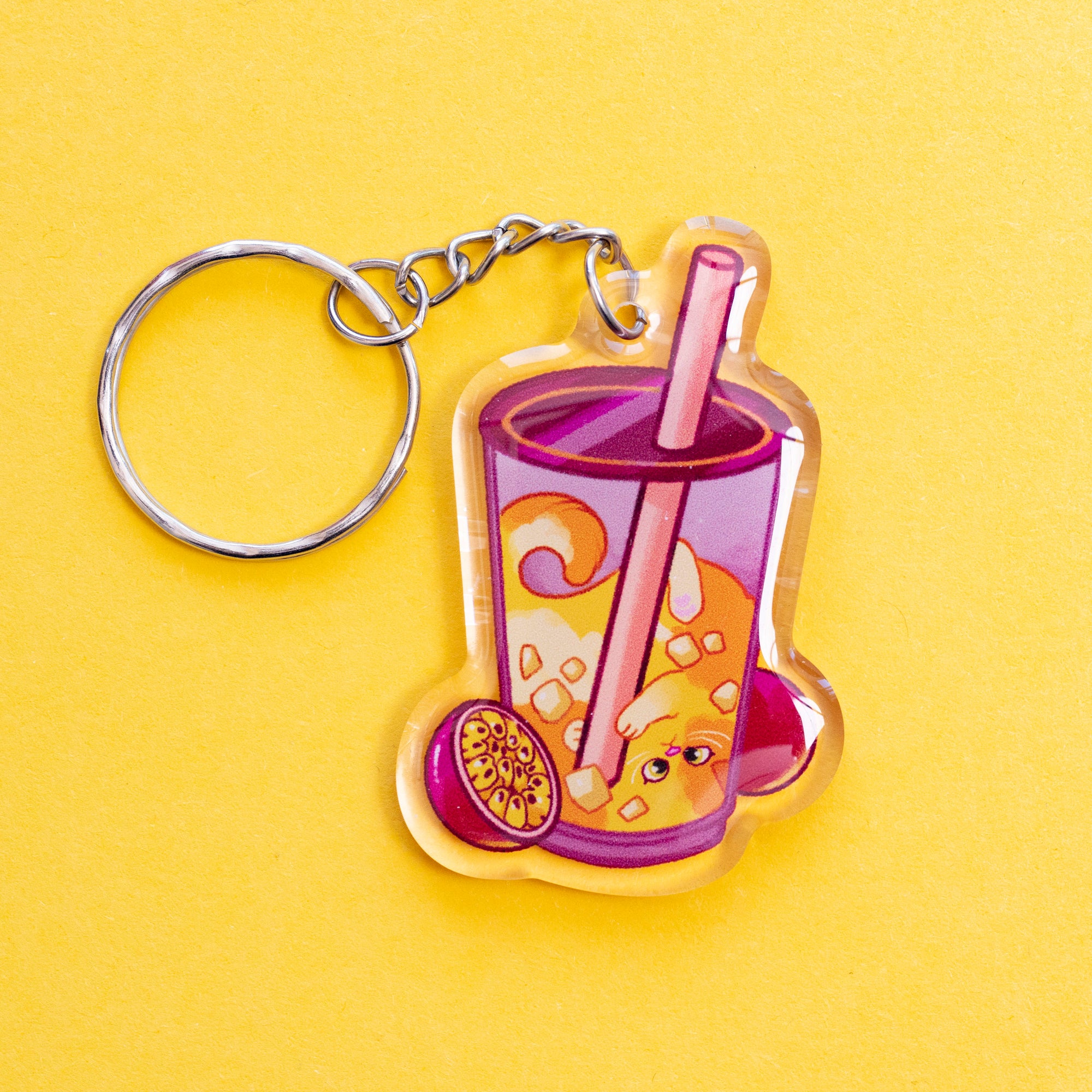 passionfruit tea cat boba keychain
