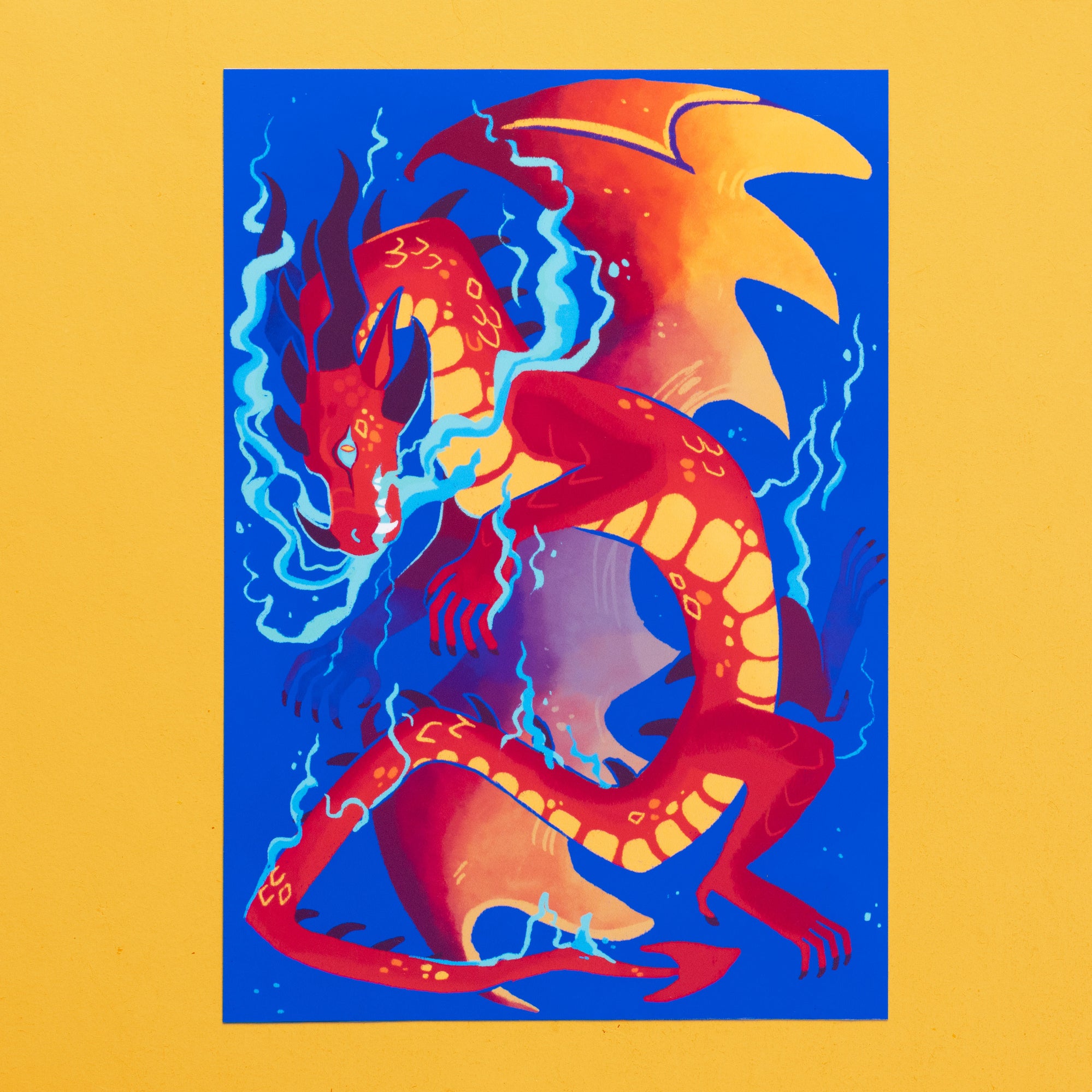 This print features Peril, one of the main characters from the popular Wings of Fire book series. Peril is a fearsome and powerful dragon with distinctive red and orange scales and bright, expressive eyes. The artwork depicts Peril in a dynamic and action-packed pose, wings spread wide and flames shooting from her mouth. Perfect for dragon lovers and longtime fan of the Wings of Fire series alike!