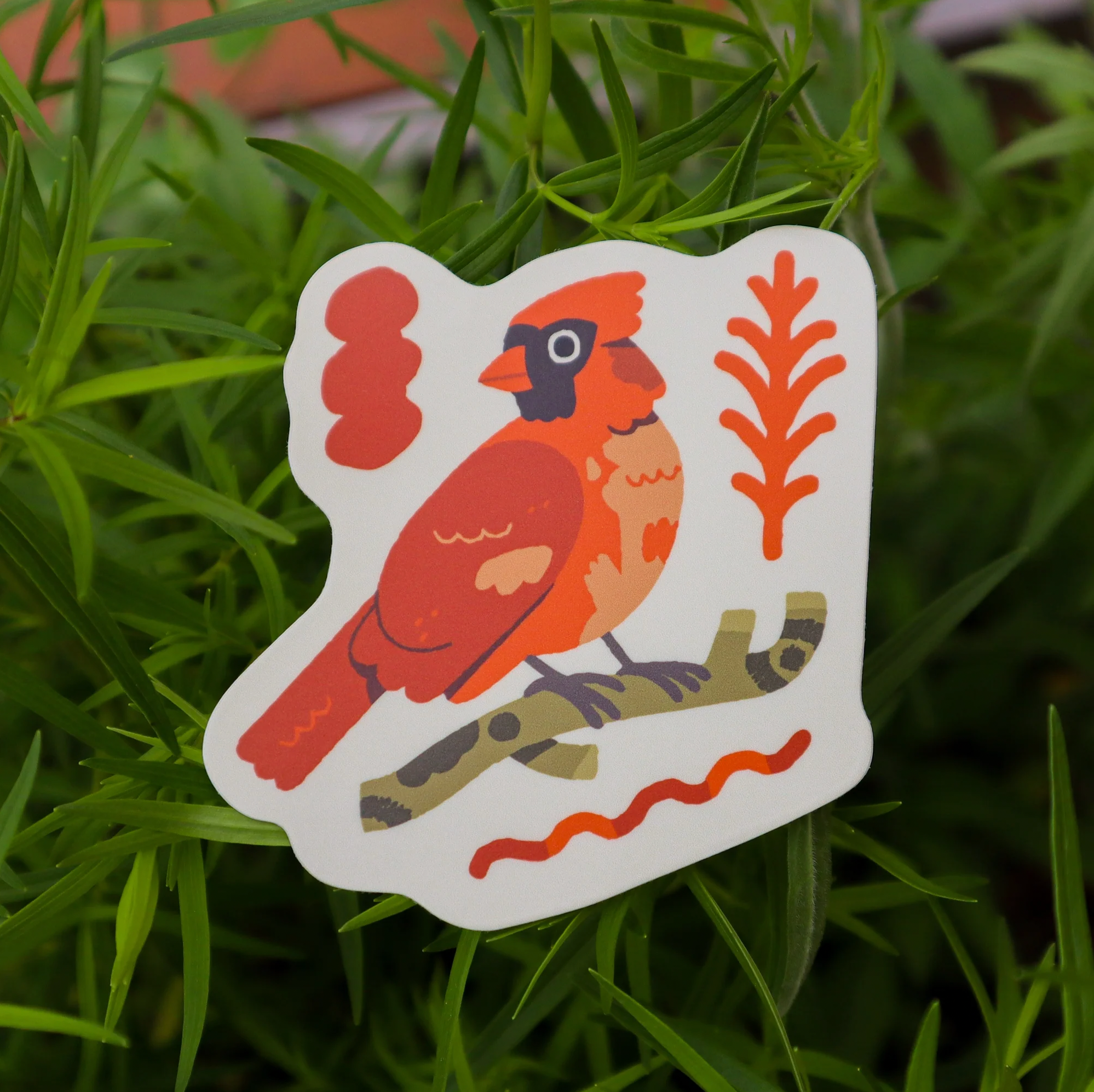 3" vinyl sticker with a gynandromorph cardinal! a cardinal that possess both male and female traits of it's species!