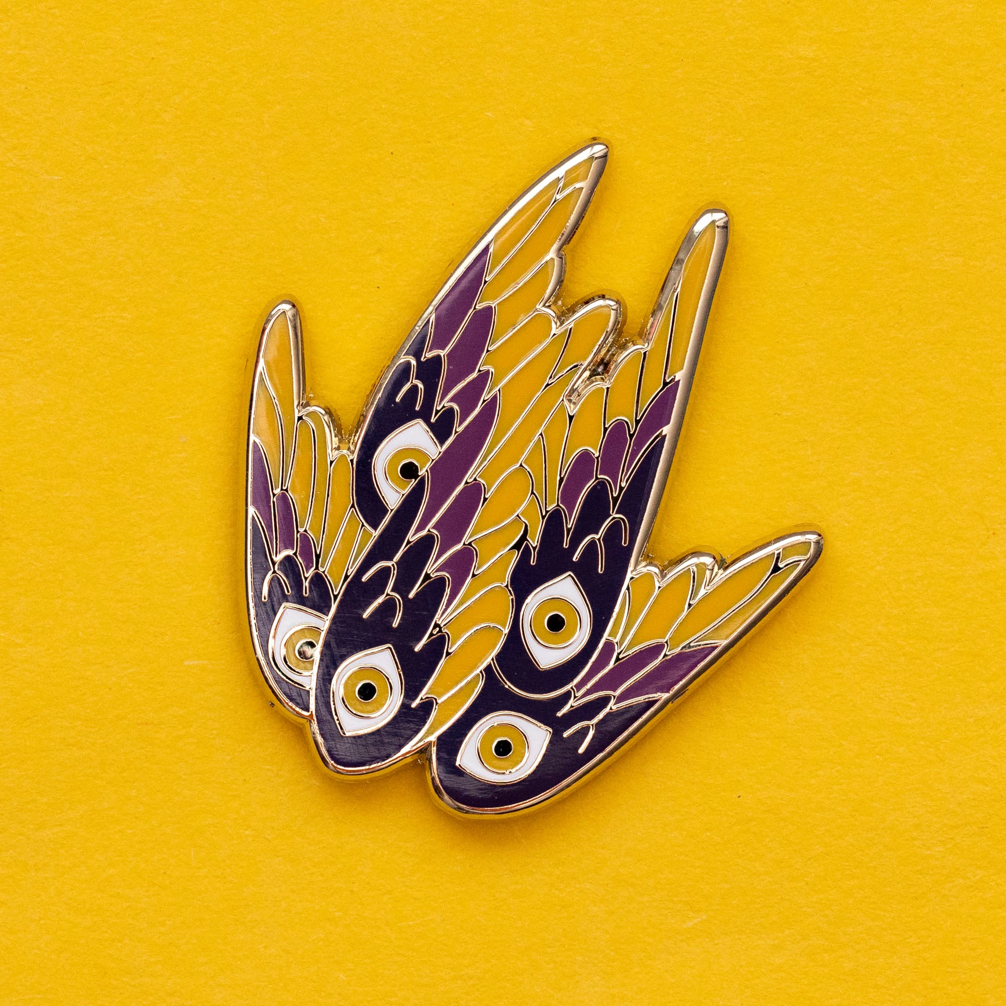 This pin is part of my angel-themed pin series, Angelology. The Flying Seraphim is available in: blue or red.