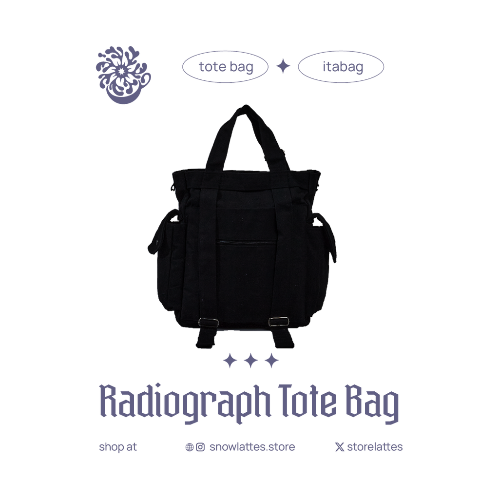 The Radiograph Two-way Bag is available in one color and is made of Canvas fabric. The bag is 40x30x10cm in size. Please make sure to check our Size Guide on the site.