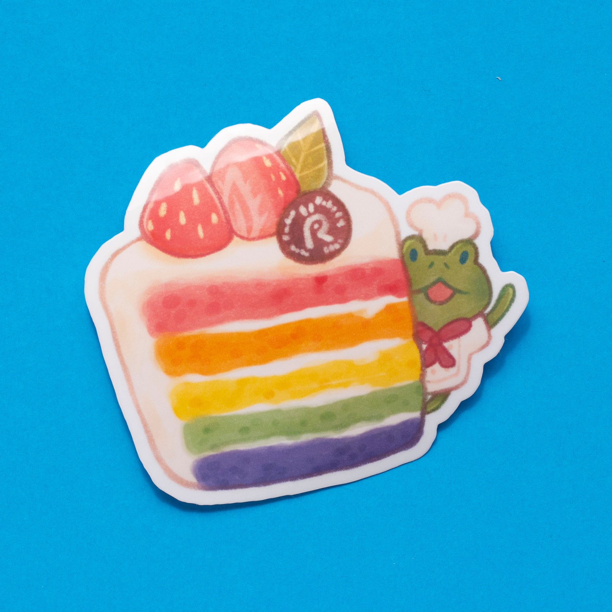 A vinyl sticker of delicious rainbow cake, perfect for Pride Month as well as every month!