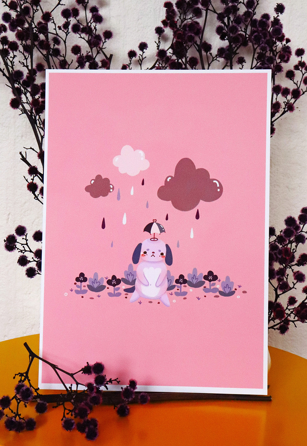 inspired by my dog who is sad when it rains and storms // Unframed a4 fine art print - printed in Melbourne using a Canon Pixma iP8760 on Epson Matte Archival Paper 189gsm. Please note colours on screen may vary slightly from the final printed artwork.