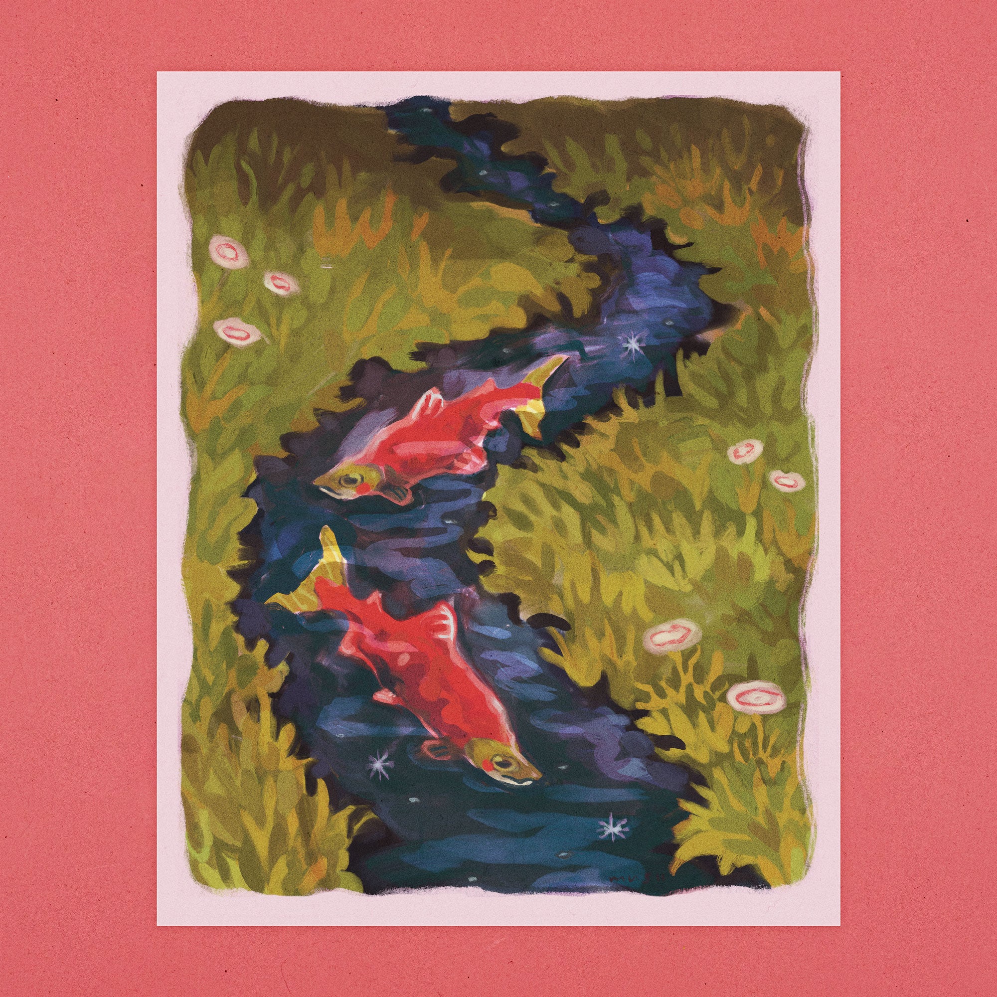 It's salmon spawning season! 8 x 10" print on 300gsm paper.