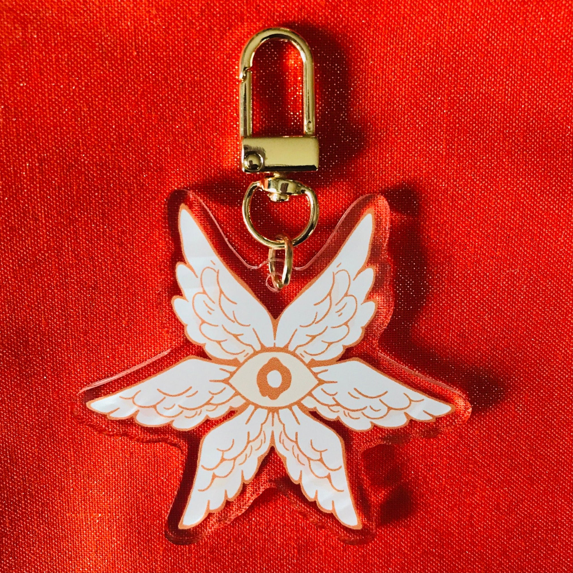 | This acrylic keychain is 2.5 inches (6.3 cm) long, double-sided with the same print on each side. The keychain has a gold lobster clasp. |