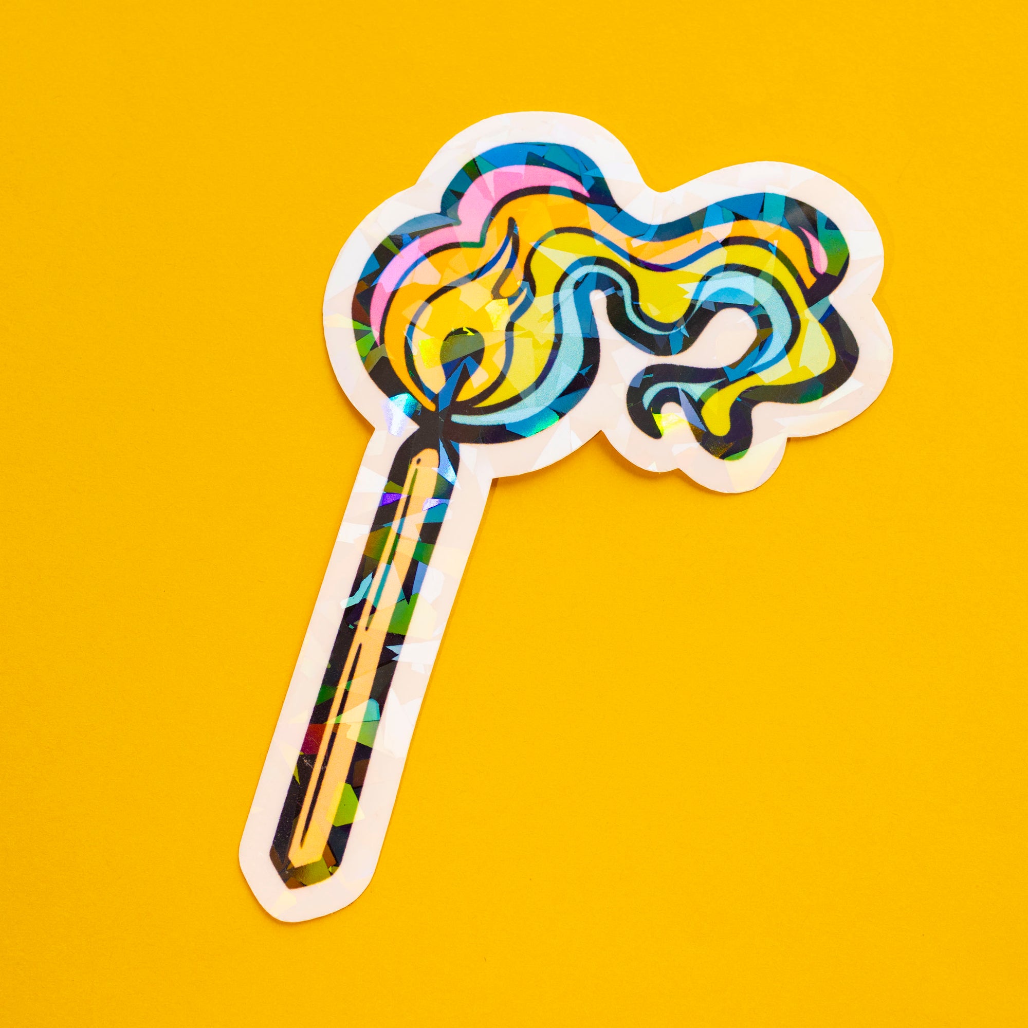 Lost in the darkness, you strike a match. Under the Chromatic Curse, flames and smoke shimmer with iridescent rainbows... Featuring holographic shattered glass finish for extra spooky magic!