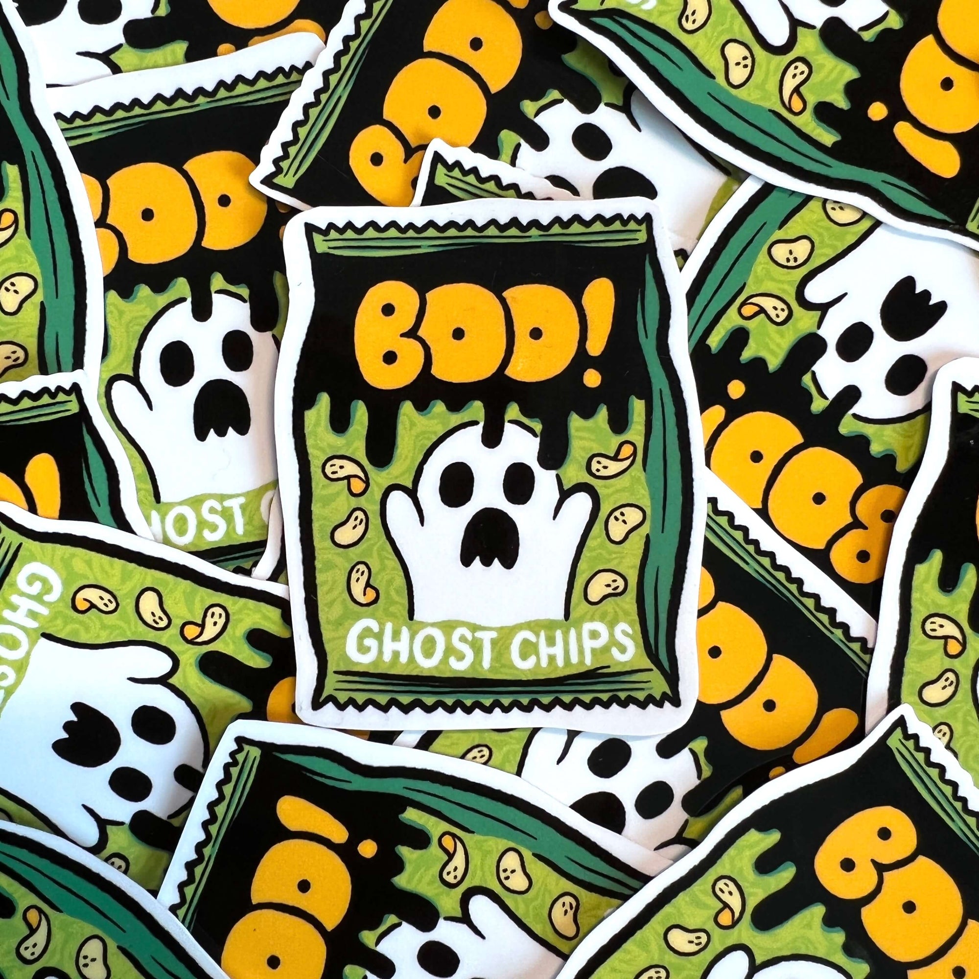 A glossy, beautiful vinyl sticker of the Boo Ghost Chips artwork! "Bro, you know I can't grab your ghost chips!"