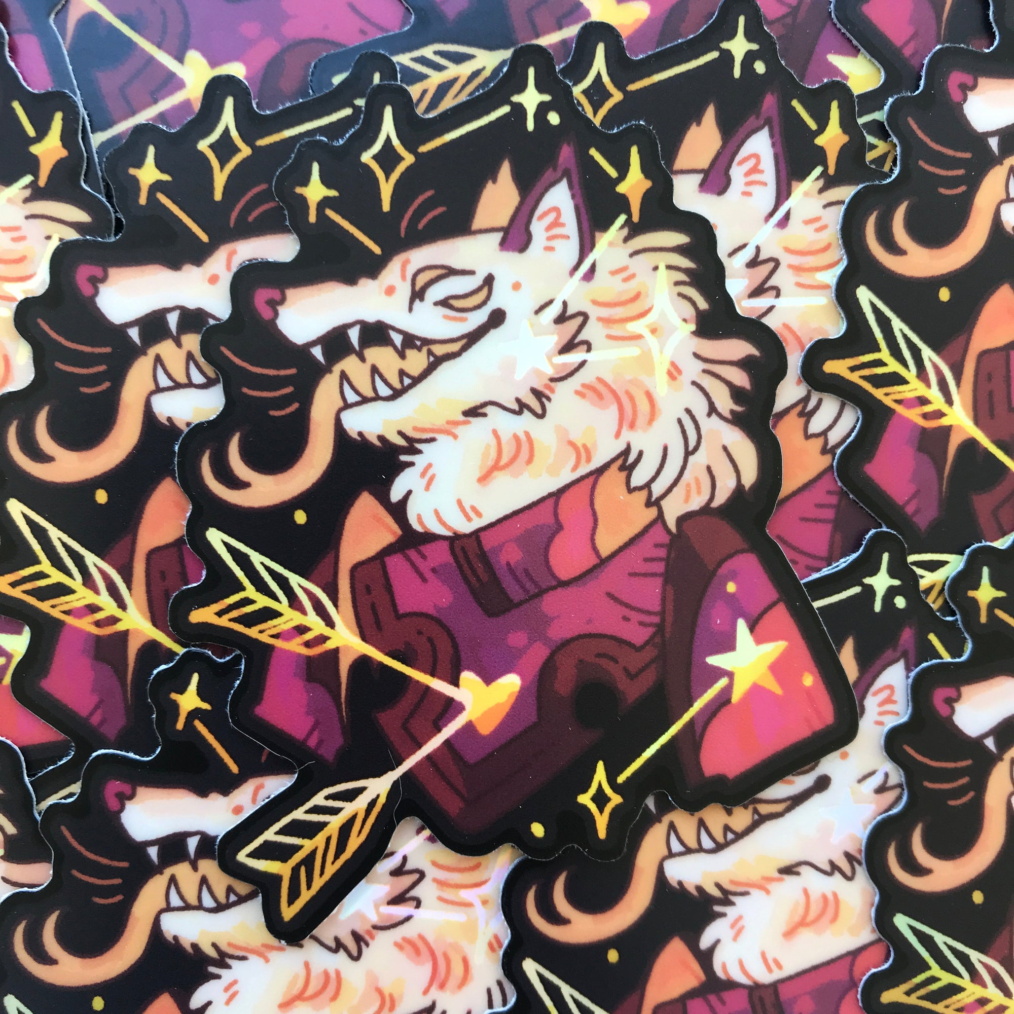 Wolf Knight This sticker is approximately 3 inches (7.6 cm) on the longest side, and printed on matte vinyl with holographic accents.