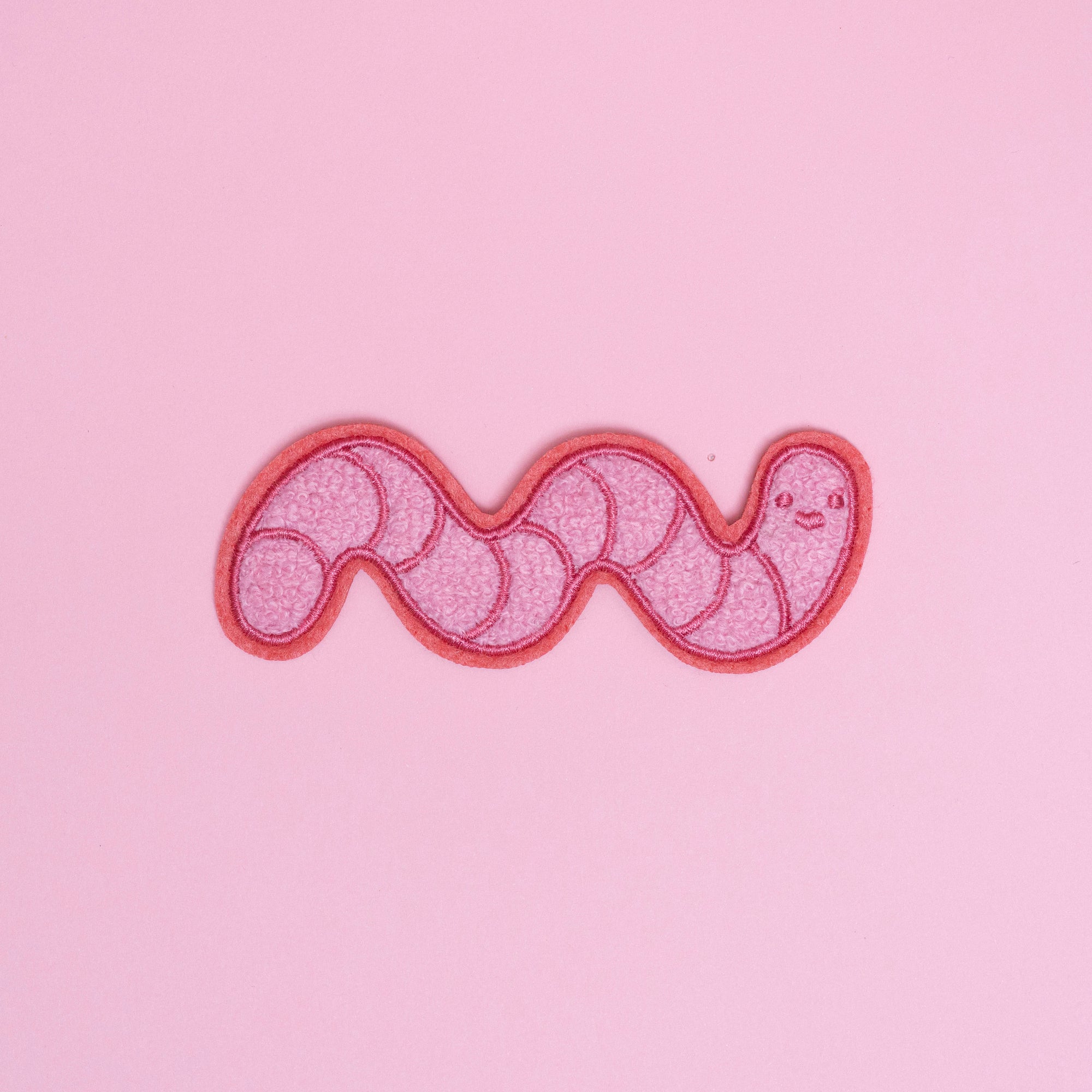 New friend to take with you wherever you go! This worm buddy is a chenille patch, meaning it's furry and neat!