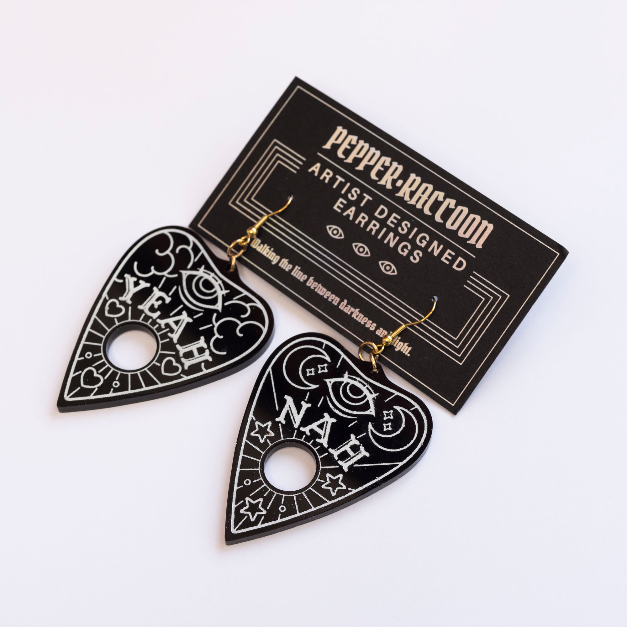 Will I be coming to your Tupperware MLM "party", bestie? Yeah nah. Get the Kiwi vibes with these extremely detailed and fun planchette earrings, with the Yeah featuring a daytime design, and the Nah a celestial night design. Handpainted details, gorgeous materials.