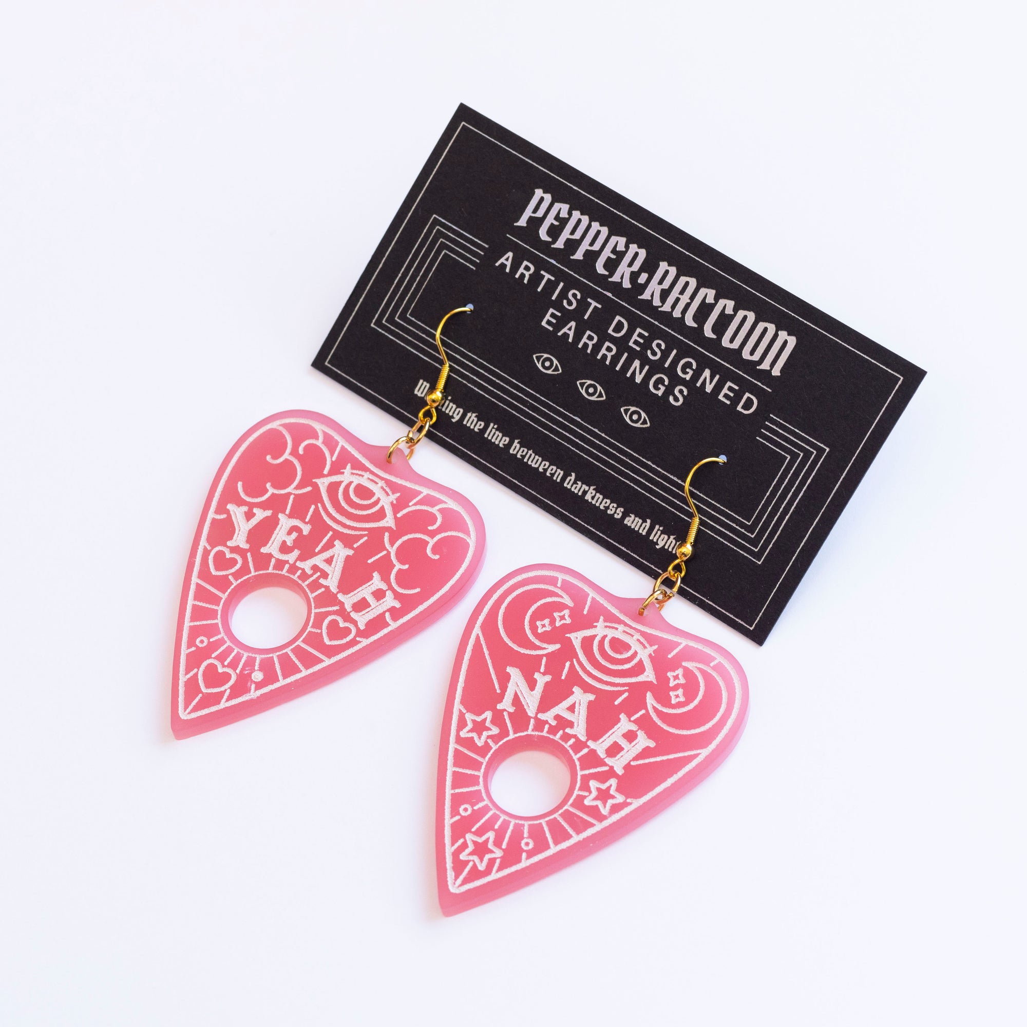 Will I be coming to your Tupperware MLM "party", bestie? Yeah nah. Get the Kiwi vibes with these extremely detailed and fun planchette earrings, with the Yeah featuring a daytime design, and the Nah a celestial night design. Handpainted details, gorgeous materials.